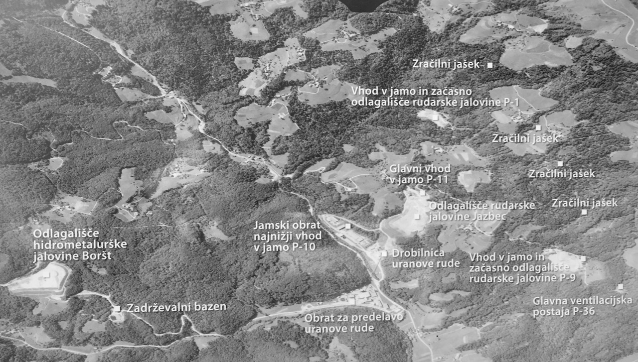 Zirovski Vrh is situated 45 km west from Ljubljana. The ore production in the mine started in 1982, and the yellow cake production in the mill started in 1984. The mine was 8 years operational and the oremill only 6 years. The whole operation was closed down in 1990. In this period 3.307.00 ton of excavated material was dug up, of which approximately 610,000 ton of uranium ore (with 0.7 kg of U per ton of ore), that resulted after processing in 452 ton of yellow cake.